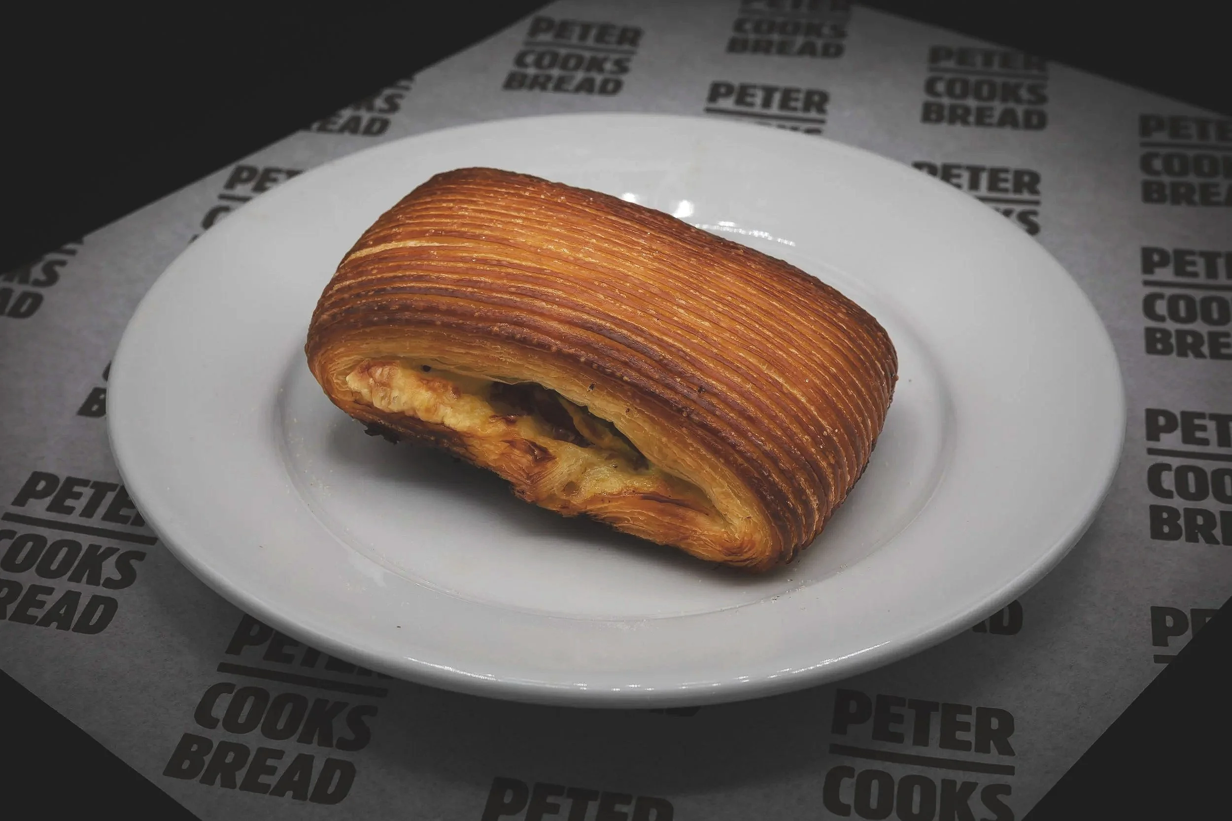 Pastrami, Gherkin, Emmental and Mild Mustard wrapped up in a crisp laminated pastry.
